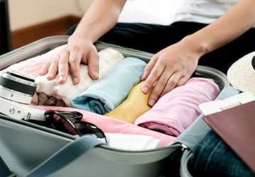 You don't have to pack your usual shampoo, conditioner, face wash, and moisturizer with you. The containers are too big and take up so much unnecessary space. You can find many smaller travel-size containers for them at any grocery store. Just transfer them into smaller containers. For better packing and saving yourself from any spilling hazard, it is best to pack your toiletries in saran wrap before you put them in a separate Ziploc bag. So, if there is any spillage, it will stay in the saran wrap or go in a Ziploc bag but won't destroy your clothes.